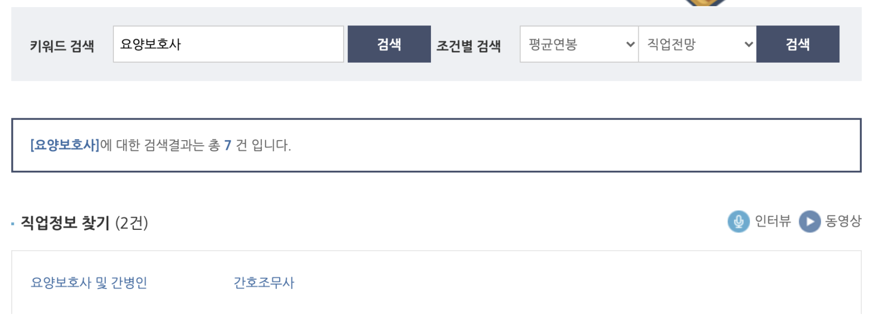 요양보호사를 검색하는 예를 들어보겠습니다.