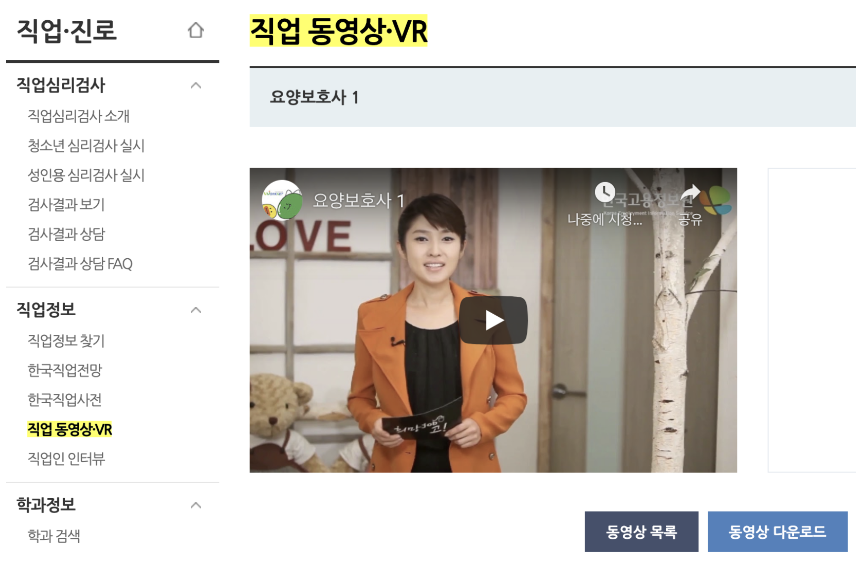 동영상으로도 직업설명을 들을 수있어서 좋구요.