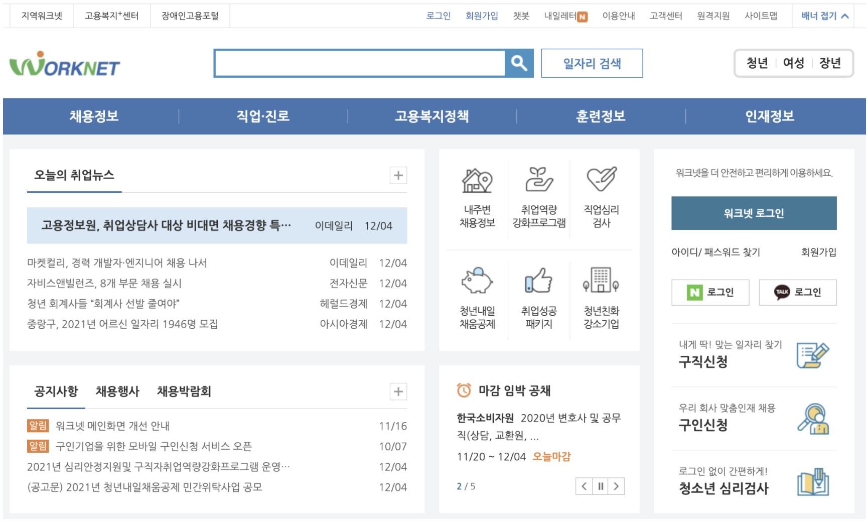 안녕하세요. 오늘 소개해드릴 것은 워크넷 구인구직 사이트입니다.