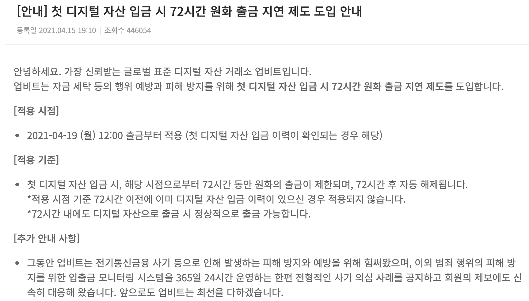 먼저는 업비트 공지를 보시지요.