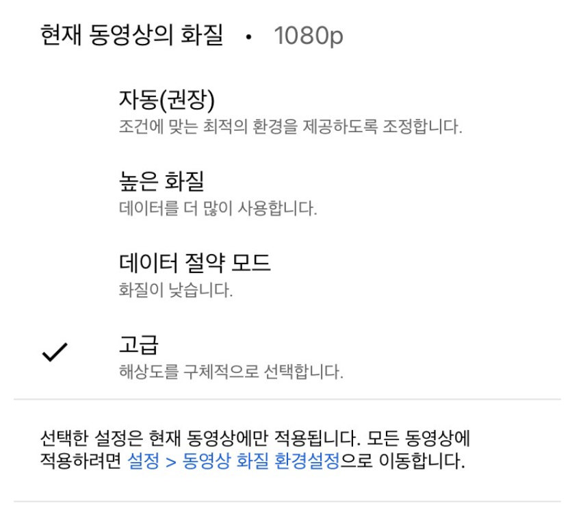 폰에서 유튜브 화질 고정