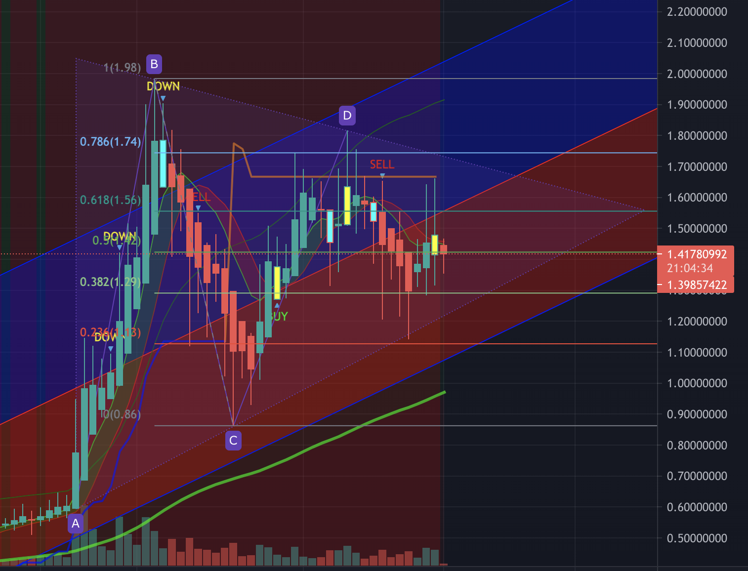 A-B는 상승 B-C는 하락 C-D는 D에서부터는 하락이후 다시 작게 상승중인데요.